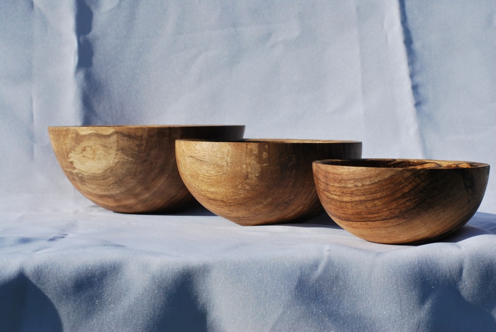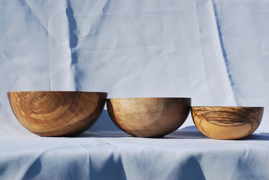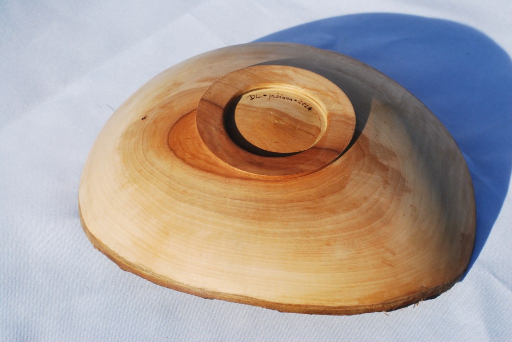 Izdelujem tudi po naročilu – v premeru so lahko sklede velike do 38 cm, krožniki do 60 cm in leseni umivalniki do 50 cm.